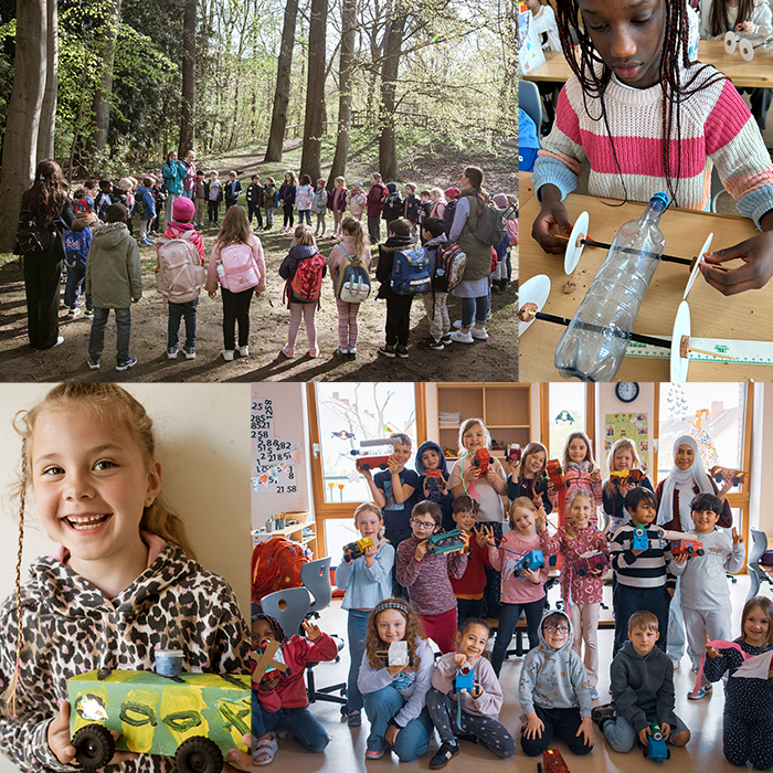 Der 4. Jahrgang baute an einem Tag Raketenautos aus alten Plastikflaschen. Diese wurden mit einem Backpulver- Essiggemisch angetrieben.